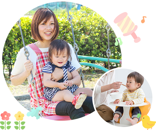 | 職種 | ①保育士(正職員) ②保育士(臨時職員) ③保育補助(臨時職員・パート) ④看護師(パート) ※働き方相談ください ※子育て支援員歓迎 |